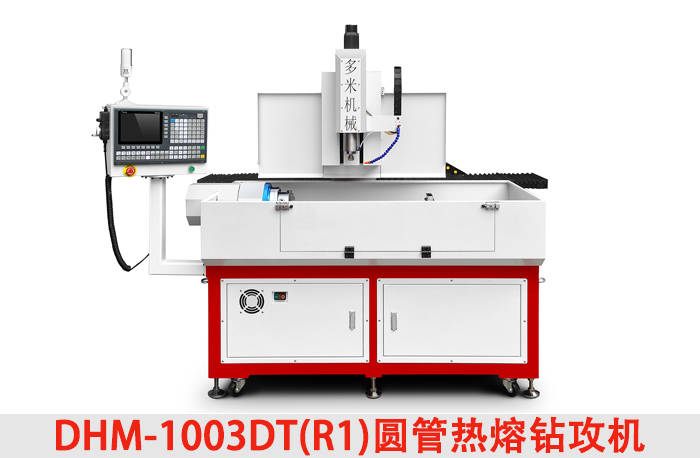 1、DHM-1003DT(R1)熱熔鉆攻機是一款多功能四軸鉆孔、攻絲設備,可選擇雙旋轉軸雙工位加工。