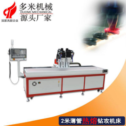 多米熱熔鉆攻機(jī)采用自主研發(fā)CNC數(shù)控系統(tǒng),無需編程可直接導(dǎo)“CAD”圖檔生成程序。雙主軸分別裝夾熱熔鉆頭和擠壓絲錐,一次裝夾完成拉伸孔和攻絲兩道工序,節(jié)省時(shí)間的同時(shí)也避免二次裝夾帶來的誤差。熱熔鉆攻機(jī)主軸添加散熱裝置,因?yàn)闊崛坫@是通過特殊的熱熔鉆頭部與產(chǎn)品表面摩擦鉆孔,會(huì)有700~800度上下的高溫,主軸加散熱裝置,可以降低連續(xù)鉆孔而產(chǎn)生的熱量,也可以延長(zhǎng)熱熔鉆的壽命,最主要還可以保證熱熔鉆攻機(jī)的主軸(內(nèi)部結(jié)構(gòu)的刀桿和本體)不會(huì)因過高的溫度而損壞。